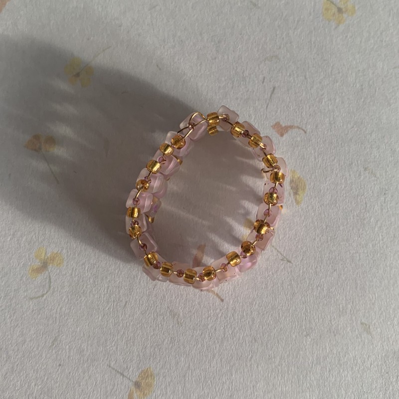 Modèle 2 : Perles roses et dorées, bague diamètre intérieur environ 22mm, hauteur environ 11mm