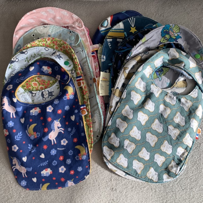 Bavoirs rectangles. Don de Stéphanie, créatrice de la marque Bébédune.