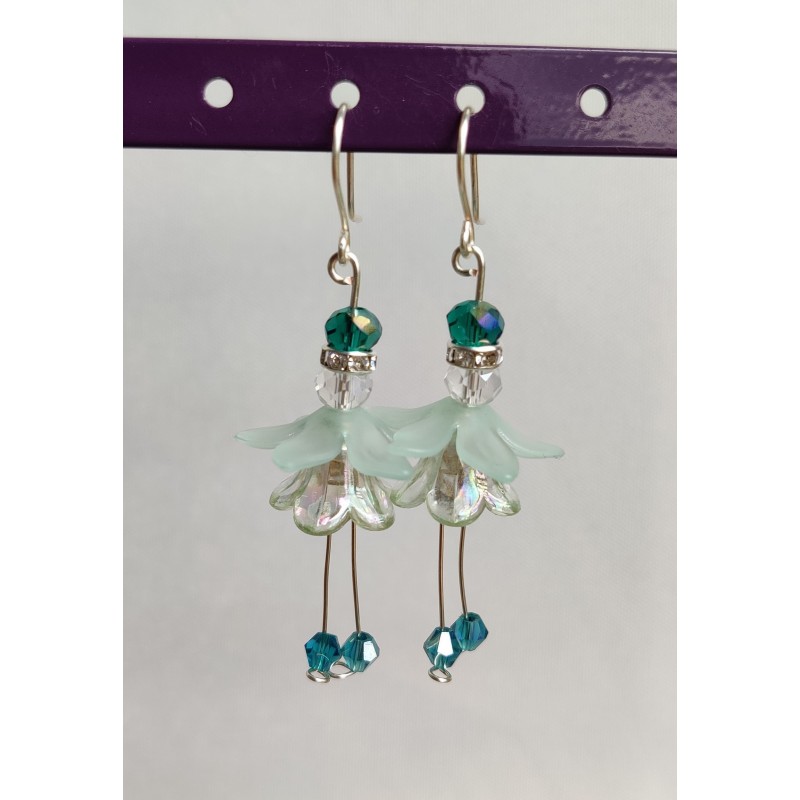 Chaque paire est unique, il n’existe pas de doubles exemplaires. Le fil utilisé est un fil de couleur argenté au propriété anti-ternissement plaqué argent, qui ne conviendra pas aux oreilles qui ne supportent que de l’argent, du plaqué or ou de l’or.