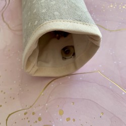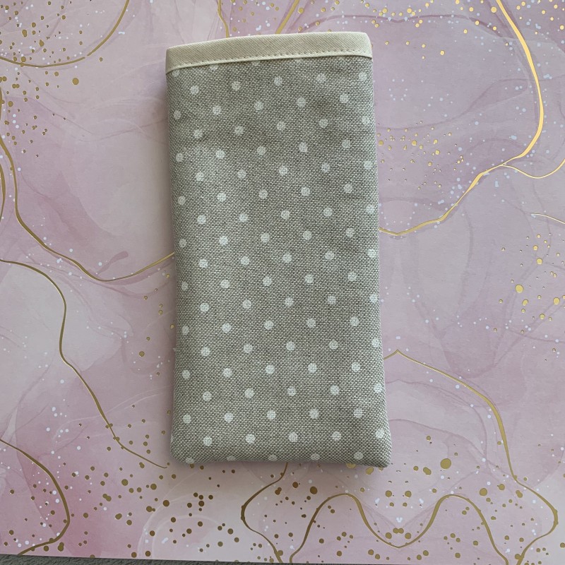 Modèle 2 : Tissu beige à pois blancs. Fermeture par bouton aimanté.