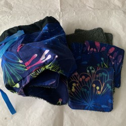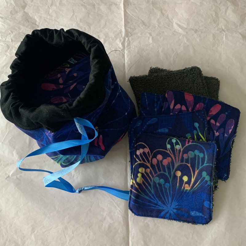 Lot de 12 lingettes avec son pochon de rangement. Fait main par Maxime et Ludivine.